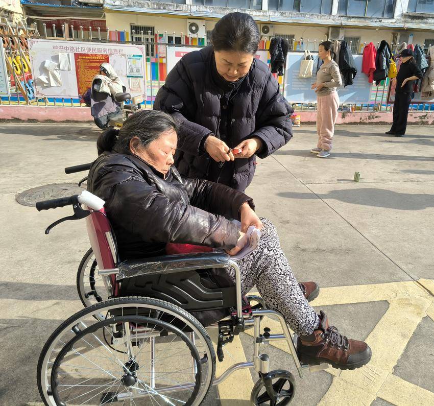 毕女士患有股骨头坏死,一侧下肢安装了假肢,属肢体三级残疾,由于假肢使用不便利,导致她日常出行很不方便,她和家人想有一个轮椅能推着她出门就医和社交。社区工作人员在入户走访过程中了解到毕女士的诉求后,及时向上级残联反映,为她申请了一套轮椅,毕女士非常高兴,再也不用为日常出行发愁了,也方便了家属对她的日常照料。