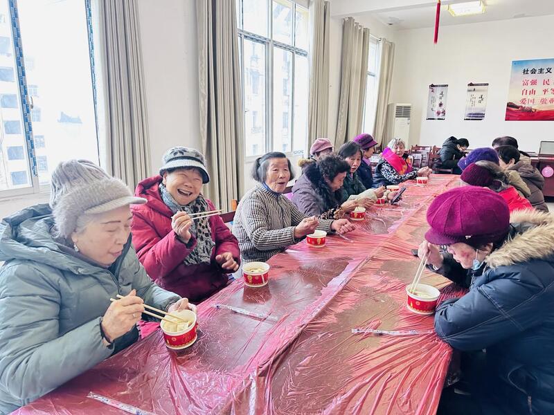 当热腾腾、香喷喷的饺子出锅,大学生们小心翼翼地将一碗碗水饺端到资深志愿者手中,传递着新生代的敬意。“孩子,你们要继续把奉献精神传下去,用行动温暖更多人!”志愿者饶国华阿姨握着尹天乐的手深情叮嘱。“阿姨放心,我们一定接好这根接力棒!”尹天乐坚定回应,暖心对话让志愿精神得以延续。社区干部手持手机,用心记录下众人分享饺子、畅谈心声的欢乐瞬间。