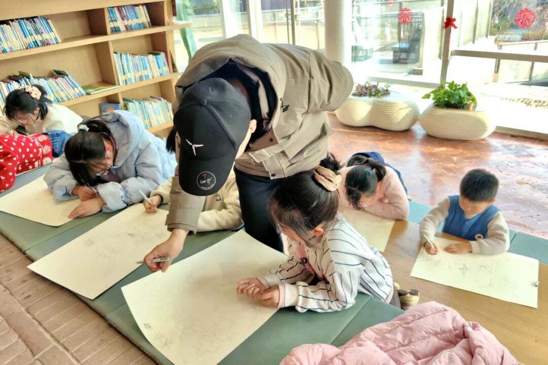 创作完成后,李正老师对孩子们的画作进行细致评析。老师既肯定了孩子们的独特创意,也针对性地提出改进建议。还现场示范了线条勾勒、色彩搭配的小技巧,让孩子们在互动中收获满满。