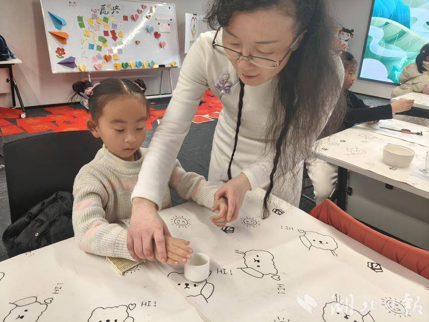 “双手接茶要轻,眼神要真诚,说一声‘谢谢’也是茶礼的一部分。”在实践环节,车老师示范了温杯、投茶、冲泡、奉茶等基本流程,并引导孩子们亲身体验。“原来喝茶也有这么多讲究!”一位孩子兴奋地分享感受,“我回家也要给爸爸妈妈泡一杯茶,教他们‘叩指礼’!”