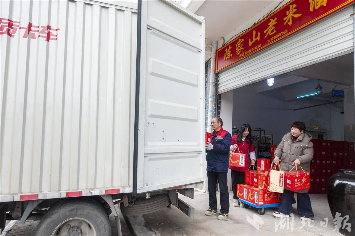 红漫天米酒正在装车外销,今年的生产的米酒销路好,年前生产的“守古”牌老米酒基本买完。