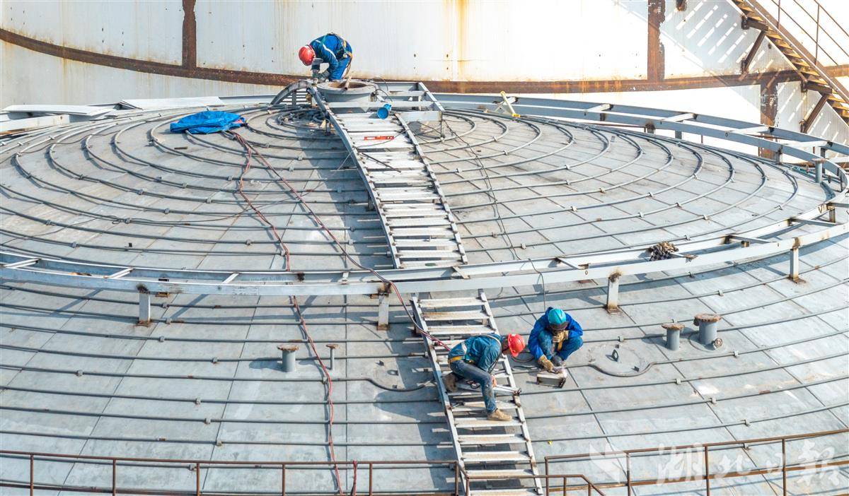2月2日,当阳湖北徽阳新材料项目建设现场一片繁忙,3000余名施工人员奋战在管道铺设、主体结构施工、设备安装等多个作业面,各类工程机械持续运转,焊接火花与设备吊装同步推进,全力冲刺2026年3月30日一期项目竣工投产目标。