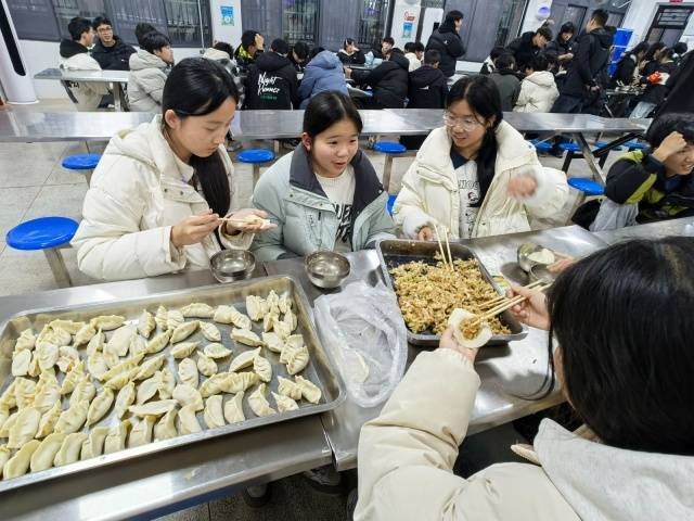 作为2025年秋季恢复办学后的首次新春师生团圆活动,学校精心筹备了这场充满心意的年夜饭,力求让每一位学生都能感受到家的温情。活动现场,师生分工协作、默契配合,一个个形态各异的饺子在指尖成型,雪白的面皮既包裹着鲜香的馅料,也包裹着师生间的深情厚谊。大家边包饺子边畅谈日常,食堂里满是欢声笑语,暖意融融,陌生感在互动中消散,情谊在协作中升温。