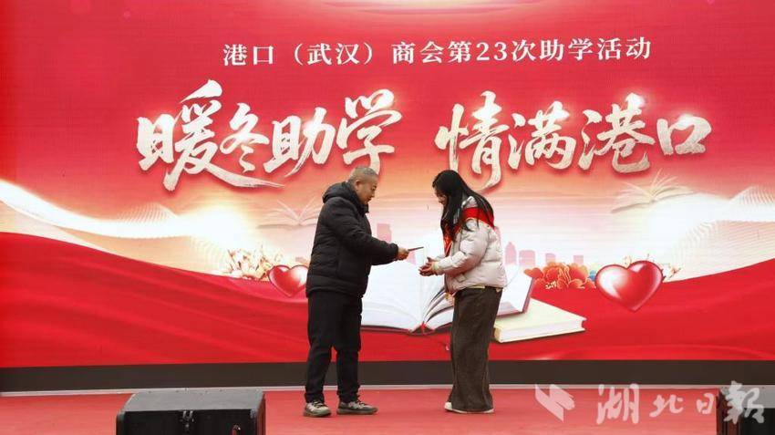 与往年节庆不同,本次新春赶集活动还融入了“助学”与“送岗”两项暖心服务。港口(武汉)商会连续第23年开展捐资助学活动,现场向85名优秀学子发放助学金5万余元,传递出乡贤反哺桑梓的深情厚谊。一旁的“春风行动”招聘区,13家本地企业提供多个就业岗位,为有需求的群众送上了一份实在的“就业年礼”。