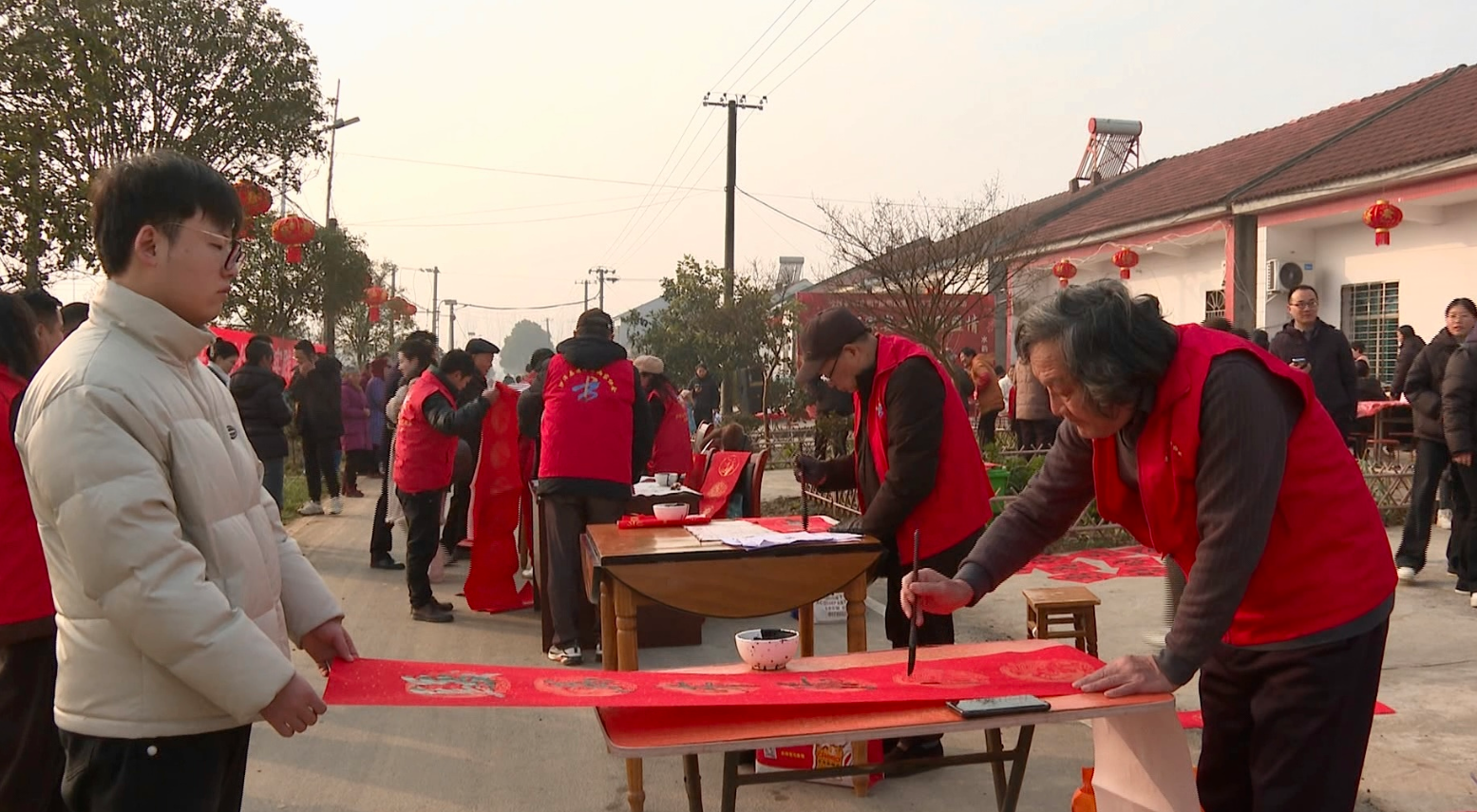 活动现场翰墨送福、乡贤捐赠、文艺汇演轮番上演。村民与书法爱好者、乡贤代表欢聚一堂。欢声笑语间,一道道热气腾腾的家乡菜陆续端上餐桌,家常小炒、蒸笼格子、鱼糕等特色菜品铺满餐桌,香气四溢。大家围坐在一起,品美食、话家常,拉近了邻里之间的距离。现场还表彰了“清洁家园”先进户,以榜样力量引领文明新风尚。