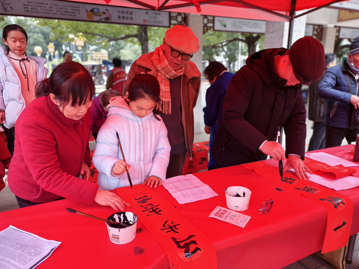 一旁专设的少儿体验区同样人气十足。在书法老师的指导下,小朋友们拿起毛笔,一笔一画认真写下属于自己的“福”字和春联。虽笔触稚嫩,但那份专注与欢喜,感染着在场每一个人。现场300余副手写春联和“福”字被居民们欣喜领走。区书画家协会胡老师一边挥毫一边表示:“让书法艺术走出展厅,走进社区、贴近百姓,是文化服务基层的最好方式。”