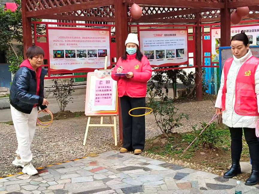 活动现场暖意融融,社区党委与工会联合会的工作人员提前布置场地、细化流程,套圈、乒乓颠球、投壶、投骰子四项趣味闯关项目依次设置,工作人员耐心讲解游戏规则与积分标准,引导居民有序参与。