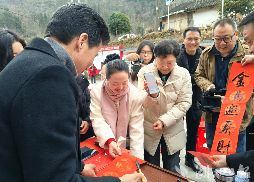 活动现场,9名医疗专家在村委会门口义诊,提供健康咨询,为村民答疑解惑;10余名书法爱好者挥毫泼墨,现场书写春联、福字赠送村民,红红火火的春联让村里年味更浓。