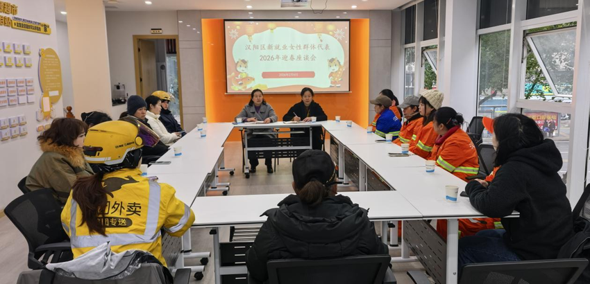 为深入贯彻关爱新就业形态女性群体的工作要求,切实发挥妇联“娘家人”桥梁纽带作用,倾听新就业女性心声、破解急难愁盼问题,2月6日上午,汉阳区妇联召开新就业女性群体代表2026年新春座谈会。来自全区网约车司机、外卖配送员、环卫工等各新就业形态领域的女性代表齐聚一堂,共话奋斗、共诉需求、共贺新春。