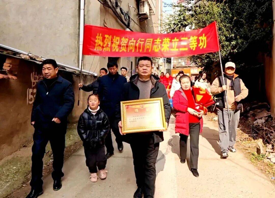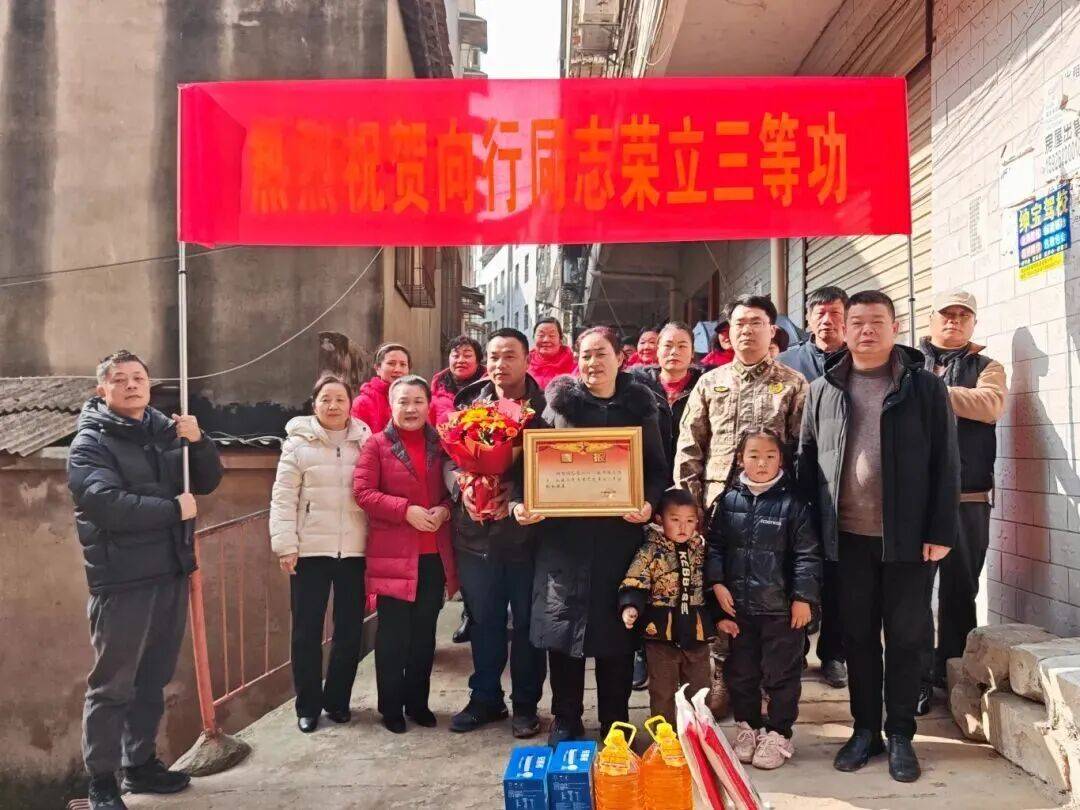 2月2日,庙岭镇街头锣鼓喧天,华容区武装部、华容区退役军人事务局和庙岭镇人民政府共同为荣立个人三等功的现役军人向行同志家属送上立功喜报,向他的家人致以诚挚的祝贺和崇高的敬意。