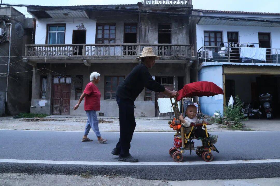 2025年9月28日,监利朱河镇。老人推着朝阳,走在旧街的皱纹上,将褪色的街景走成了温暖的年轮。