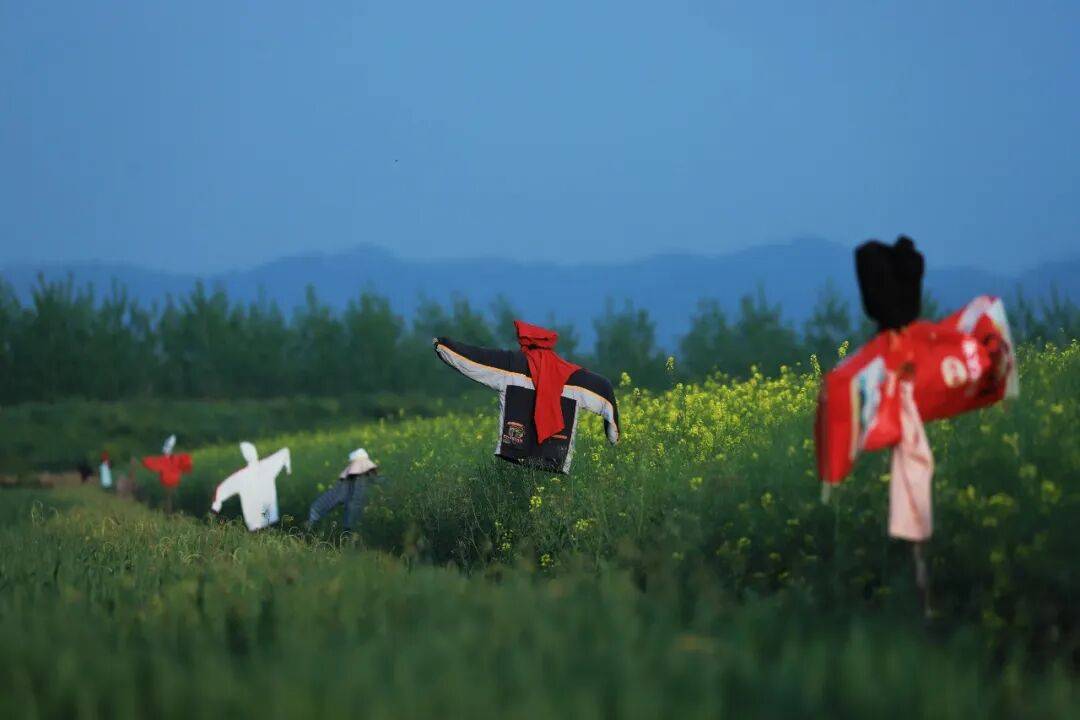 2025年4月7日,监利大垸农场。威武的装束下,是木棍毫无生命的支撑。扬起的手臂,表达言不由衷的誓言。现实里,我们无可否认扮演过类似角色。
