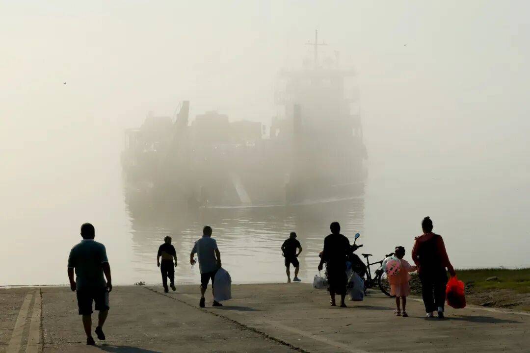 2025年7月6日,监利长江鄢铺渡口。行李牵绊了脚步,大雾遮蔽了彼岸,但渡口注定会成全行人与渡船的双向奔赴。