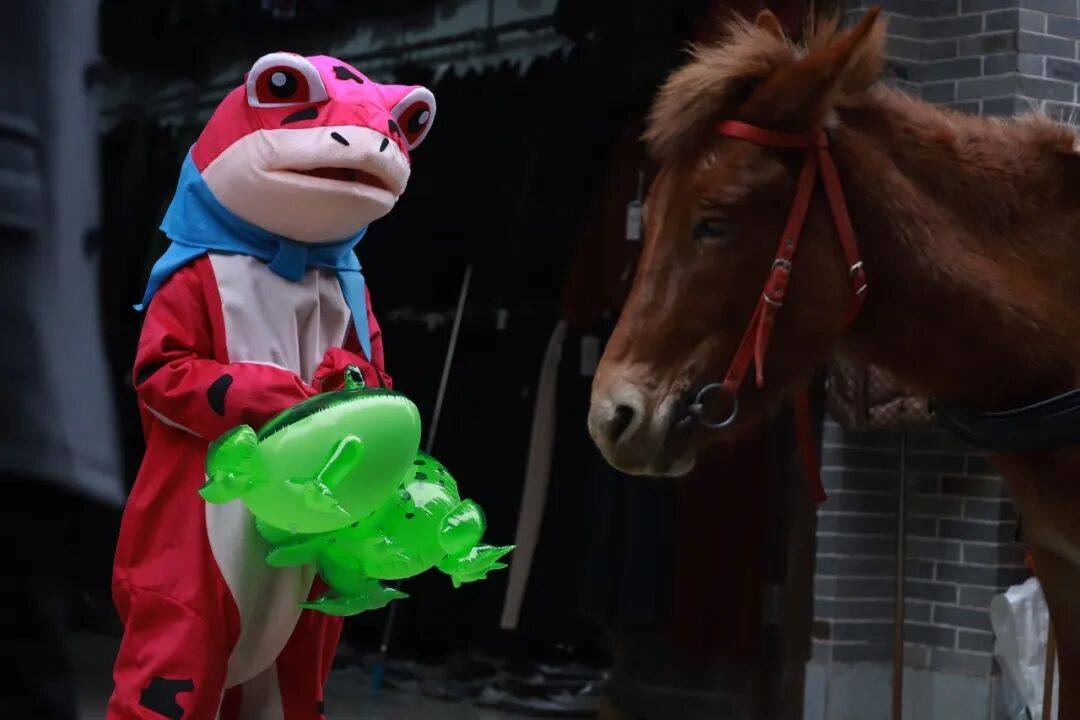 2025年2月11日,湖南省汨罗县长乐镇。老街古巷,一场隔着物种的相遇,一个童话与另一个童话的对视,共同演绎了这场关于“被定义”与“被消费”的荒诞仪式。
