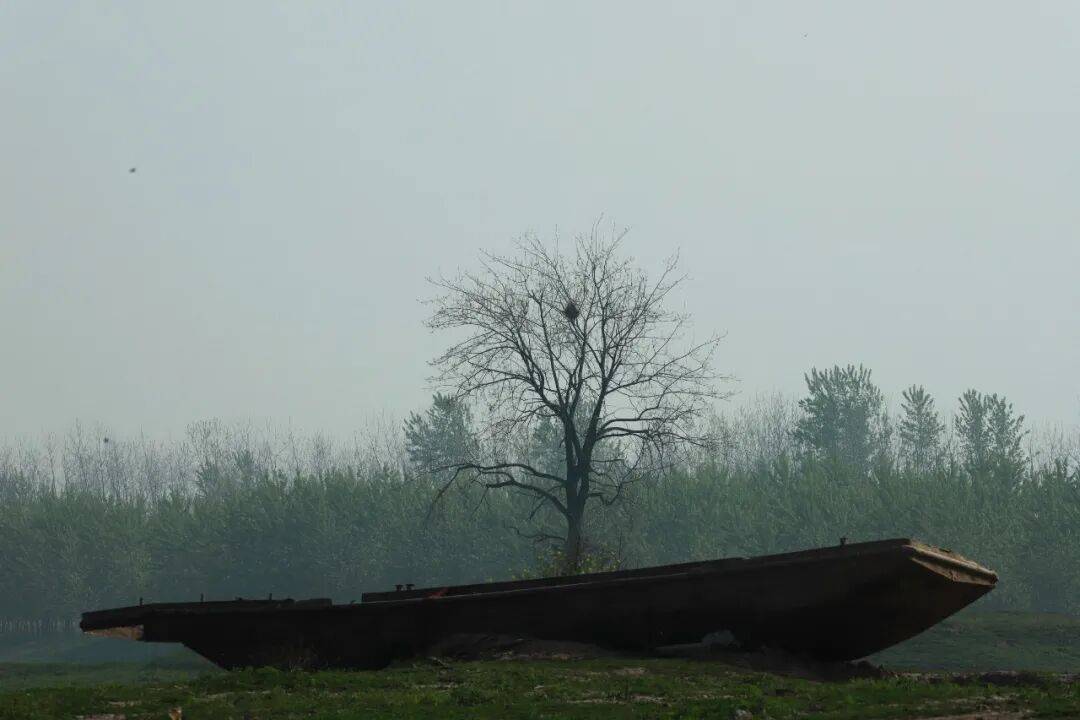 2025年4月6日,监利何王庙长江故道。船是搁浅的梦,在荒坡锈成月亮;树是扬起的帆,把血脉伸进天空。一个被雕琢成远行的梦,一个被遗弃为静止的魂,在这个枯水的季节,共同等待下一个汛期的来临。