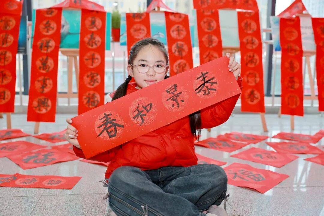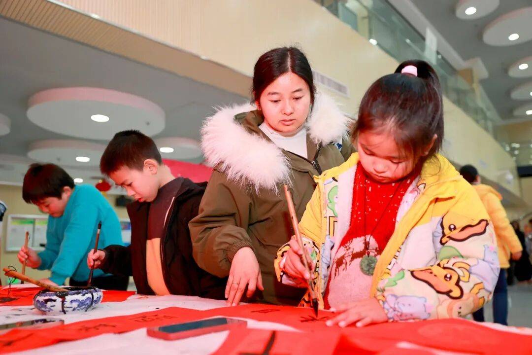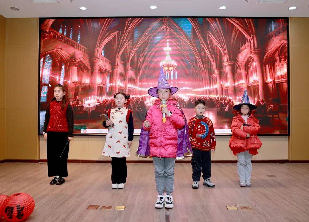 展演尾声,“洪孩子”们化身哈利·波特、哪吒等经典文学角色,呈现创意表演《BOOK思议的“洪孩子”·童声送吉祥》,将气氛推向高潮。馆内同时开展写福字、有声明信片打卡等体验活动,墨香与书香交融,洋溢着浓浓年味。