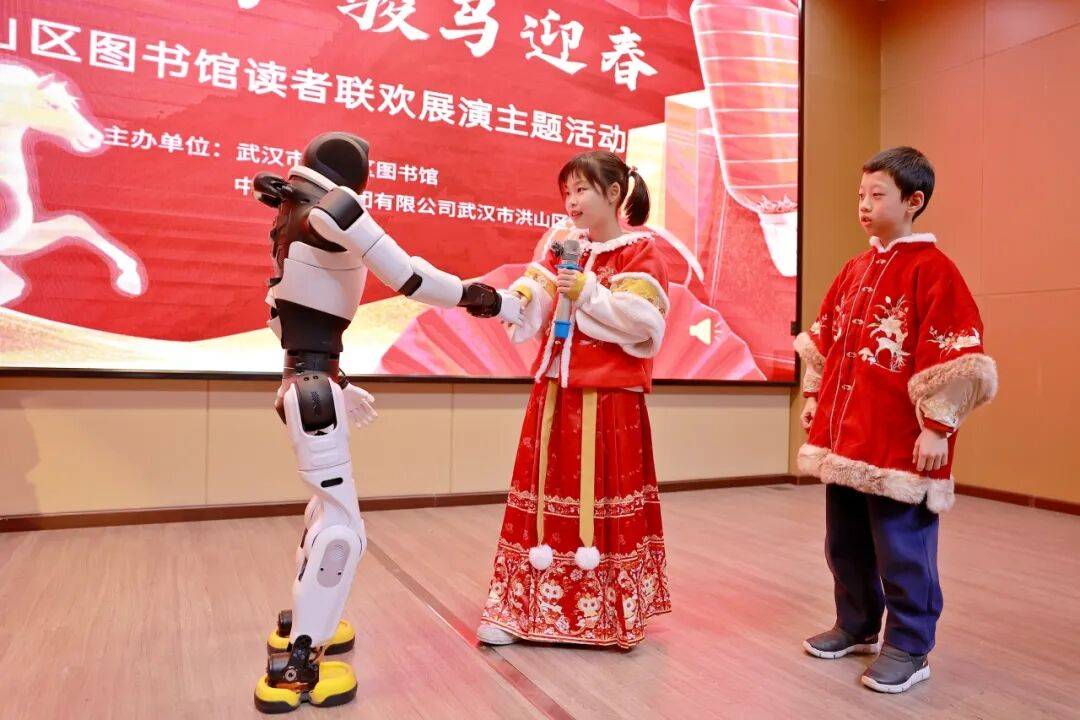 湖北日报客户端讯(通讯员肖满、向艳、张倩)2月4日下午,洪山区图书馆联合中国邮政洪山区分公司举办“书海奔腾 骏马迎春”读者联欢展演活动。传统文艺与人工智能在书香中交织碰撞,为现场读者带来一场新颖别致的文化体验。