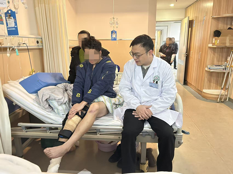 湖北日报客户端讯(通讯员邓畅)“来,小杰,抬小腿,感受肌肉发力,我扶着你。”近日,16岁少年小杰膝关节前十字韧带重建术后一周,孝感市第一人民医院骨科Ⅰ副主任、主治医生汤睿坐在病床边,掌心稳稳托住他的患肢,耐心地指导他进行康复训练。