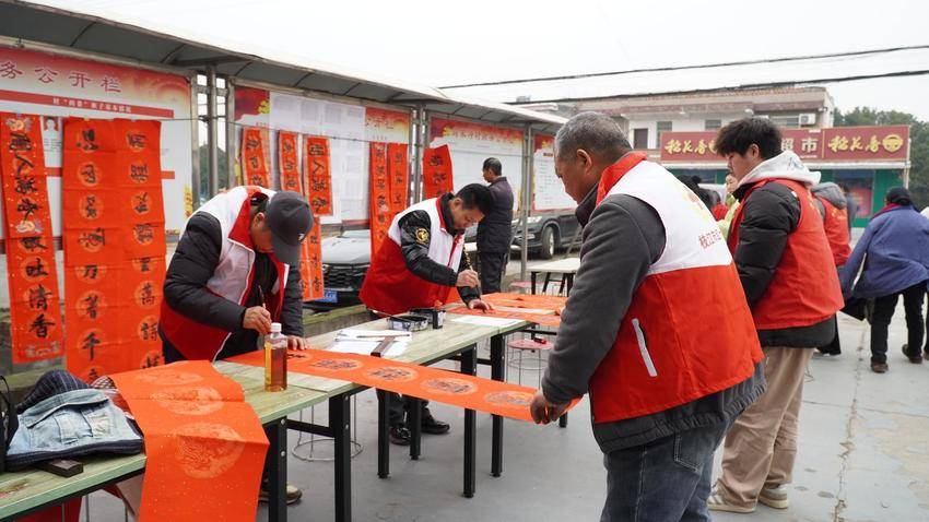 活动现场墨香阵阵、笑语盈盈。书法志愿者们挥毫泼墨,一副副寓意吉祥的春联和福字在笔下形成。市红十字会驻村干部与志愿者们一同协助,将60余副春联、50多个福字送至村民手中,传递了新春的美好祝愿。