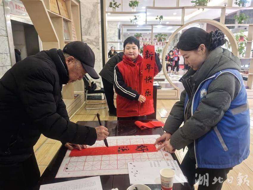 湖北日报客户端讯(通讯员陈萍)新春将至,钟祥市郢中街道码头街社区年味渐浓,为让辖区居民感受新春暖意,社区组织志愿者书法家开展写春联送祝福活动,网格员与热心志愿者全程协助,以笔墨传情,用服务暖心。