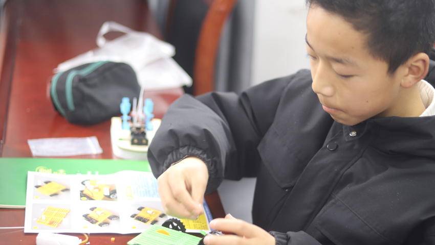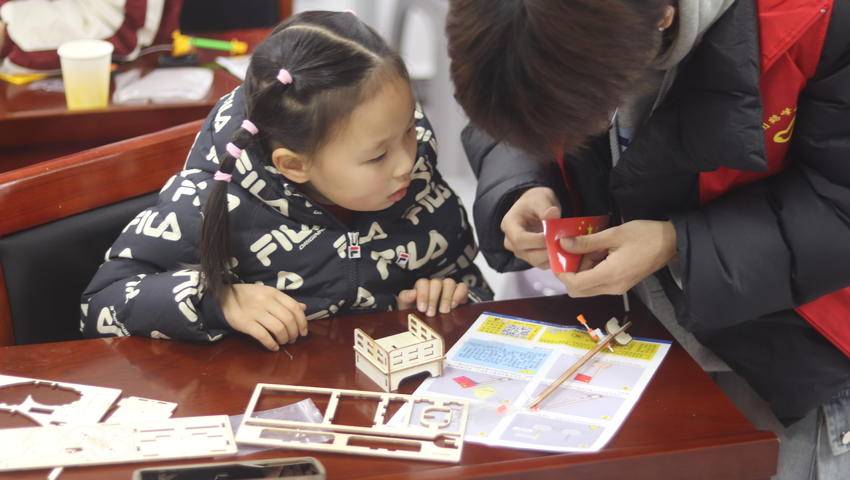 2月5日上午,社区爱心托管班的孩子们没有沉浸在手机屏幕的短暂快乐中,而是围坐在“科技盒子”前,在志愿者的引导下,动手制作升旗台、飞舞的蝴蝶等。没有即时满足的声光刺激,只有零件拼接时的细微声响与逐渐成型的作品。最终的作品固然动人,而孩子们眼中那份持续凝聚的专注更让人惊叹。
