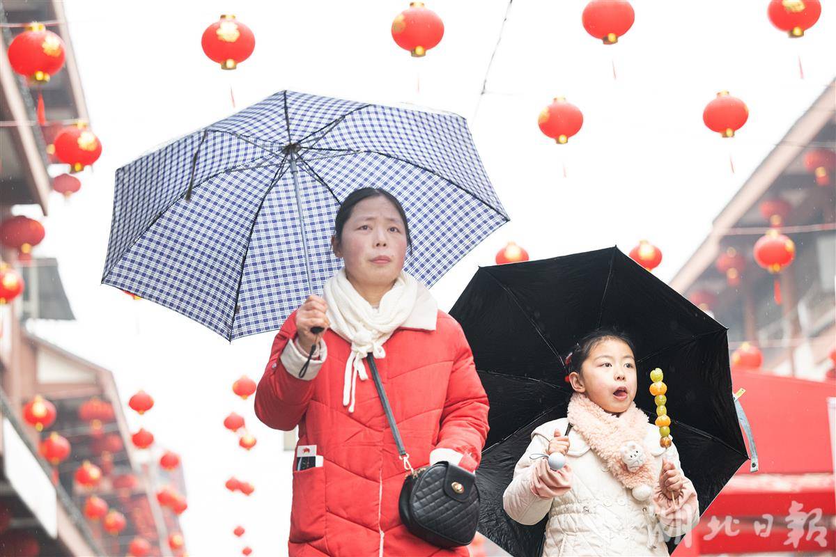 2月6日,一名小朋友和家长在茅庙集古街逛街。(湖北日报全媒记者 任勇 通讯员 刘颖 刘仪聆 摄)