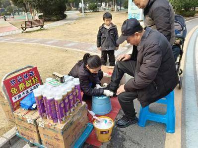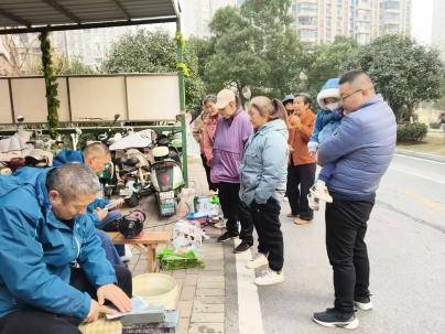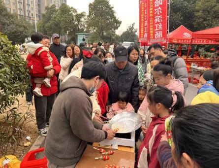 便民服务区同样人气旺盛,多项贴心服务同步开展:磨刀服务点,老师傅手法娴熟,不一会儿就把刀具磨得锃亮锋利;健康检测站,医护人员耐心为老人测量血压,并提供冬季保健建议。糖葫芦制作区,现场熬糖、串果,晶莹剔透的糖葫芦吸引了许多大小朋友。洗地毯、刷鞋服务点,工作人员认真清洗、打理,让旧物焕然一新。轮胎充气处,不少车主推着自行车、电动车前来,直呼“这服务太实用了”。