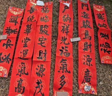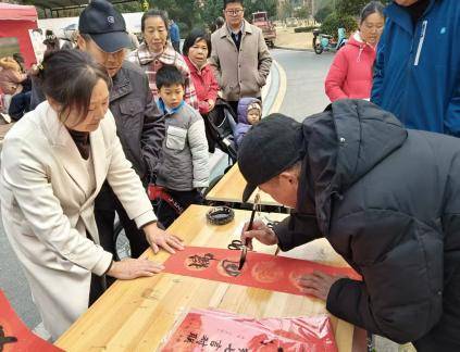 活动伊始,书法服务区便聚满了居民。书法老师俯身挥毫,笔走龙蛇间,“福临骏宅财源茂,喜绕华堂运气高”“门迎骏马财源广,户纳祥光福气多”等一副副寓意吉祥的春联跃然纸上。