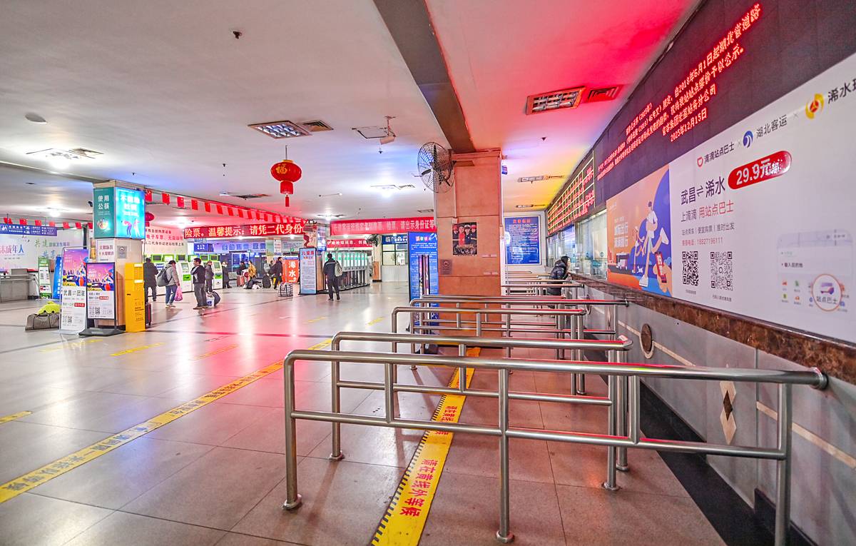 2026年武汉春运宏基汽车客运站售票厅。
