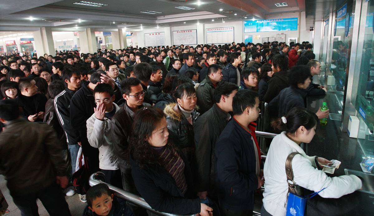 2009年武汉春运宏基汽车客运站售票厅。