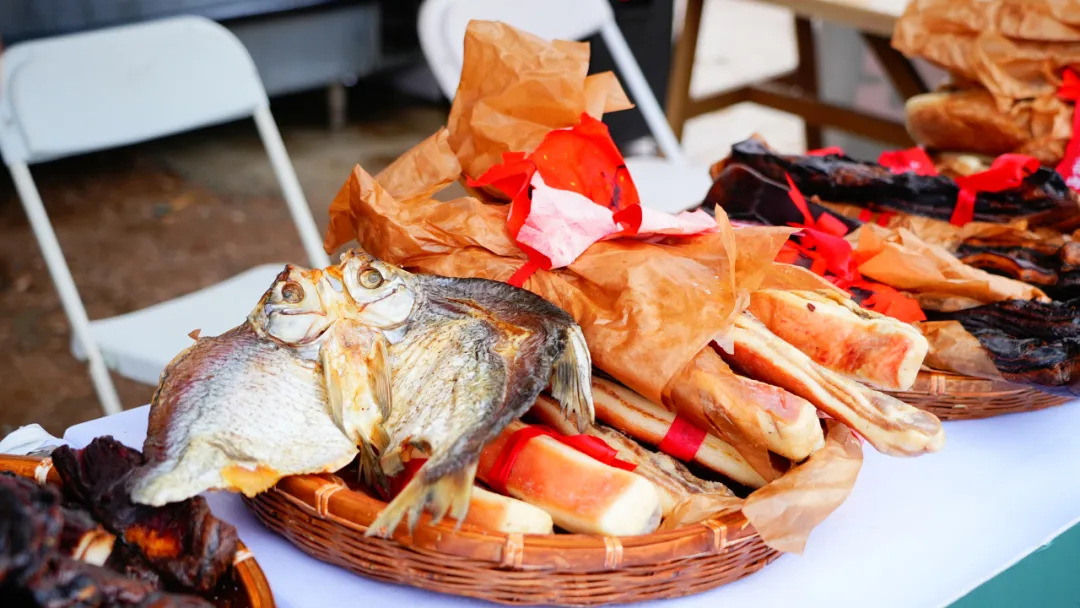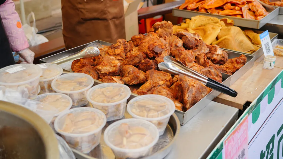 作为活动的重要组成部分,特色年货市集“满仓吉市”汇集了满满的烟火气与本土特色。黄陂三鲜、鸭子煲、清汤鹅等地道美食香气四溢,唤醒味蕾记忆。本地农产品等特色摊位也一字排开,好不热闹。朝阳村的豆丝摊位前早早排起了长队。朝阳村党支部书记、村委会主任熊伟介绍:“今天我们准备了200斤米浆,现场制作近千张豆丝免费供游客品尝,既让大家尝到家乡味,也带动了村里油、土鸡、糯米等农副产品的销售。”