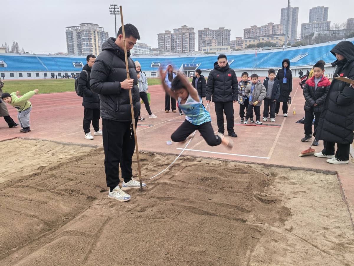 五峰县渔洋关小学402班的向晨希是第一次参加冬训体能测试赛,寒风中,穿着短袖短裤的他正在场边热身,“寒假后一直在训练,为这次测试做准备。”