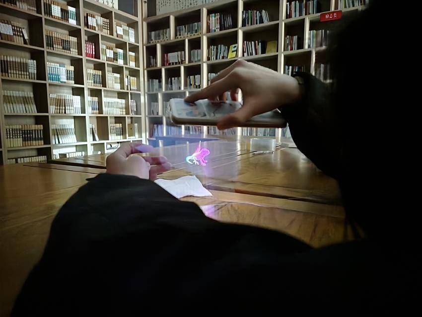 随后,方静玲为孩子们带来了“光的魔术”——3D全息投影。她利用透明塑料片与手机,为孩子们呈现出一个奇幻的立体影像世界。孩子们瞪大了眼睛,惊叹不已。志愿者讲解原理:“透明的塑料片就像一面斜着放的小镜子,手机则像一个手电筒在放动画片。当手机里的光照到这面斜着的小镜子上时,光会被反射,正好弹进我们的眼睛里,就形成了我们看到的立体影像。”孩子们恍然大悟,对科学的奇妙产生了更浓厚的兴趣。