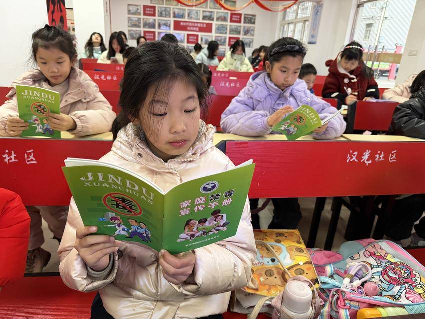 随后,社区戒毒康复中心工作人员聚焦禁毒宣传重点,通过展示仿真毒品模型、发放禁毒宣传手册等方式,直观揭露了“奶茶粉”“跳跳糖”“邮票”等新型毒品的伪装套路,讲解了传统毒品、新型毒品及非列管成瘾性物质对儿童身心健康、家庭幸福的严重危害。工作人员结合未成年人涉毒案例,警示孩子们警惕陌生人馈赠的零食、饮料和电子烟,坚决不进入不适宜未成年人的场所,从源头筑牢识毒、防毒、拒毒的思想防线,鼓励孩子们争做“禁毒小卫士”,向家人传递禁毒知识,共同守护无毒家园。