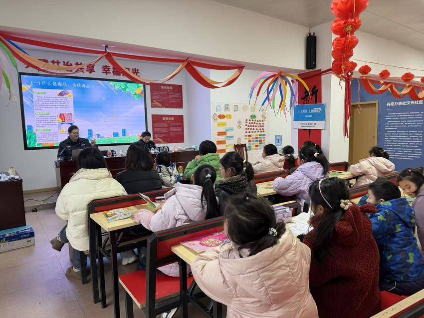 湖北日报客户端讯(通讯员陈静、陈保华)2月9日起,孝感高新区丹阳办事处汉光社区、社区戒毒康复中心、城东派出所、襄阳市美好社会组织服务中心联合壹基金汉光社区儿童服务站,共同开展儿童安全综合科普宣传活动,旨在增强辖区儿童安全防范意识和自我保护能力,有效防范毒品侵害、校园霸凌、游戏充值诈骗等未成年人安全风险。