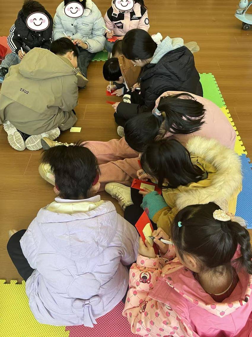 随后进行的“红包传递祝福”环节,则让温馨与感动缓缓流淌。每位孩子领取到一个空白红包和一张便签,他们在纸上认真写下对伙伴的真诚祝愿,将其装入红包,并在封面署上自己的名字与一个醒目的“赠”字。所有红包被收集至场地中央,随着一声令下,孩子们闭眼随机抽取一个。拆开瞬间,专注阅读的神情、悄然绽开的笑容,让现场充满暖意。“祝你天天开心!”“新学期一起加油!”——陌生却真挚的祝福,成为孩子们收获的一份独特新年礼物。