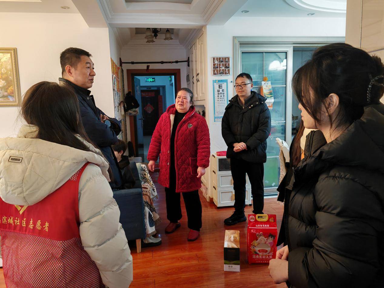 “大爷,快过年啦,我们来看望您,祝您新岁安康、身体康健!”“阿姨,给您提前拜年了,愿您新春喜乐、平安如意!”走访过程中,在社区负责人和街道综治网格中心相关负责人的带领下,慰问组带着真挚的关怀与新春的期许逐户登门。他们嘘寒问暖,送上诚挚的祝福,细心询问慰问对象的身体健康状况、日常起居情况以及实际困难,倾听他们的心声、记录诉求,并鼓励他们树立信心,告知他们若需要社区帮助可随时联系。