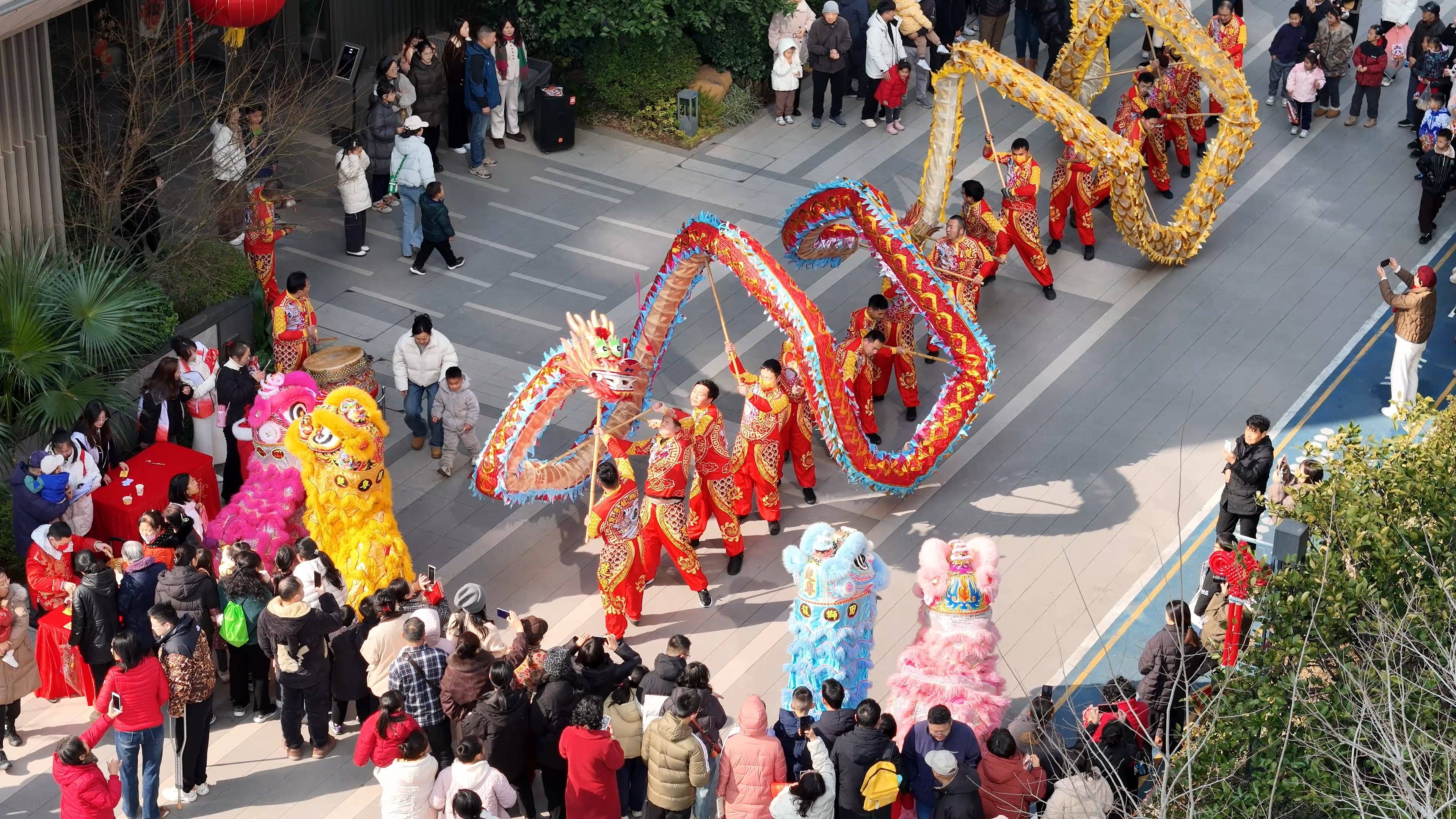 手作的温情尚未消散,铿锵的锣鼓声已从小区入口阵阵传来,专业舞龙舞狮队伍的巡演将活动氛围推向了高潮。“咚咚锵!咚咚锵!”激昂鼓点声中,金龙腾跃、雄狮起舞,表演队伍依次走进未来中心三个小区及宁康园社区、湘隆社区。灵动的身姿、精湛的表演引得居民纷纷驻足围观、拍照留念,欢呼声与掌声此起彼伏,处处洋溢着欢乐祥和的新春气息。