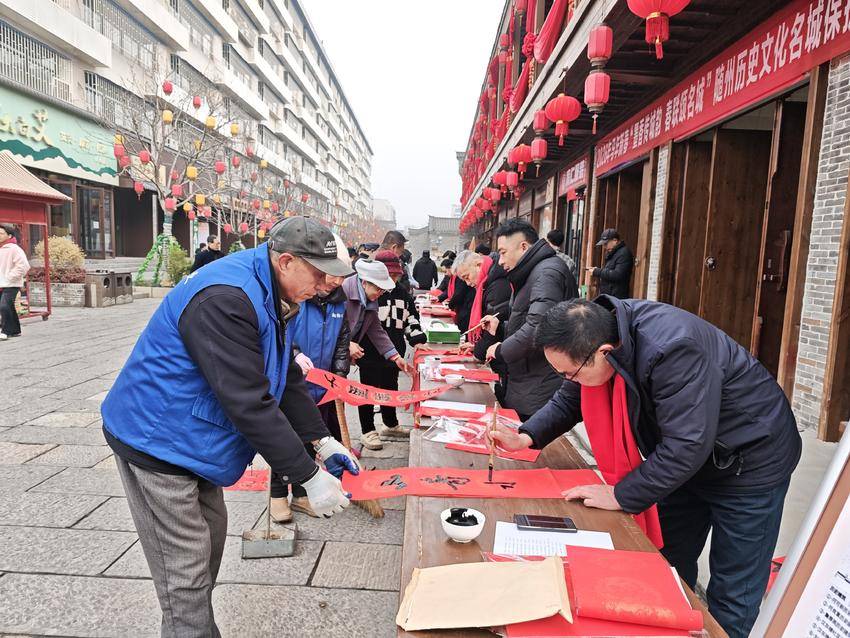 活动现场笔墨飘香、年味浓厚,书法家们凝神运笔、挥洒自如,将传统年俗文化与文明城市创建有机融合,一幅幅寓意吉祥的春联与福字一气呵成,既有辞旧迎新的美好祝愿,也饱含共建文明家园、共创美好名城的殷切期盼。
