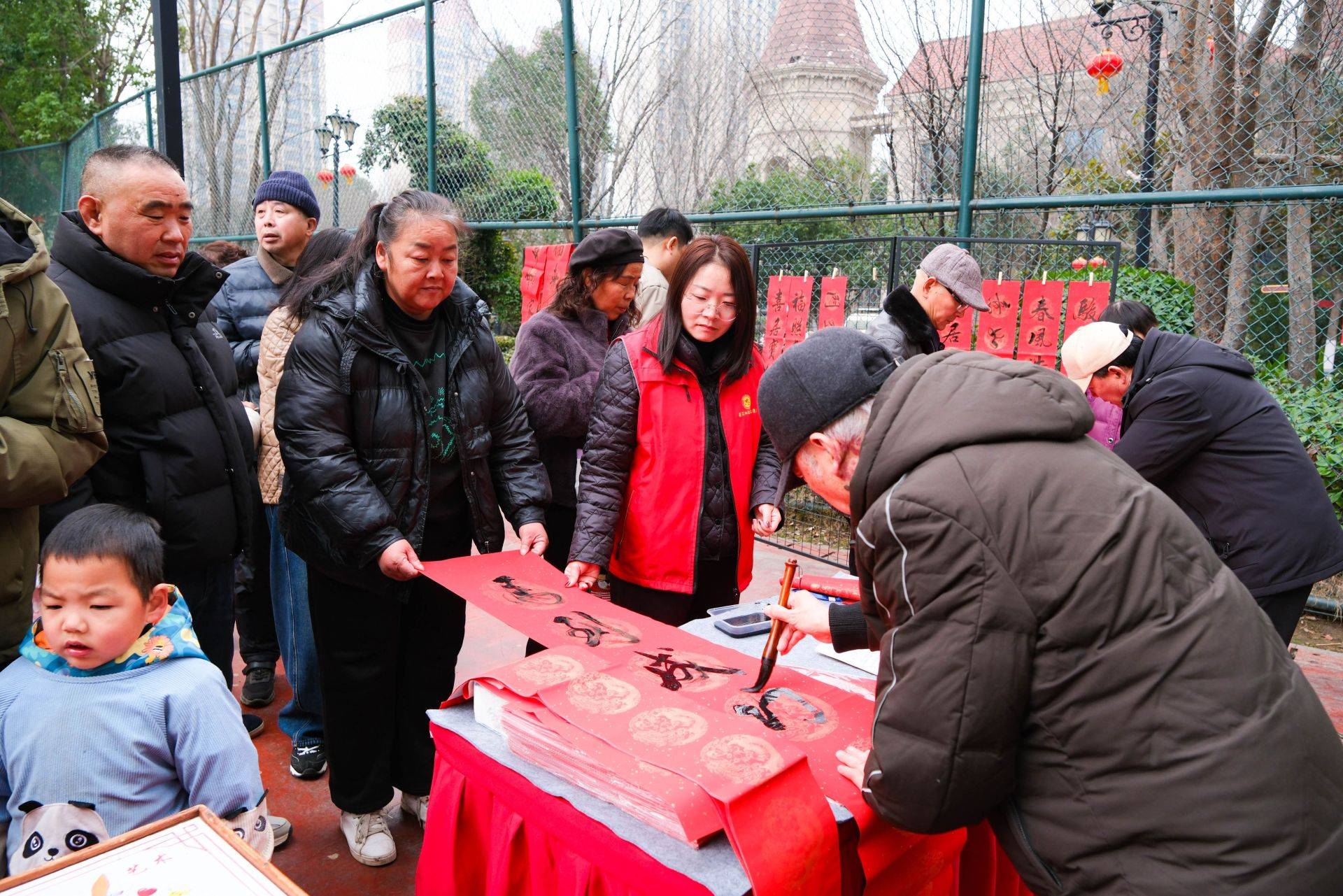 现场最热闹的要数非遗百艺街。写春联的桌子前围了好几层人。“老师,帮忙写个‘出入平安’吧!”“给我家写个‘福’字,要大气点的!”红纸铺开,毛笔落下, 一份份带着手写温度的祝福被居民们喜滋滋地捧走了。