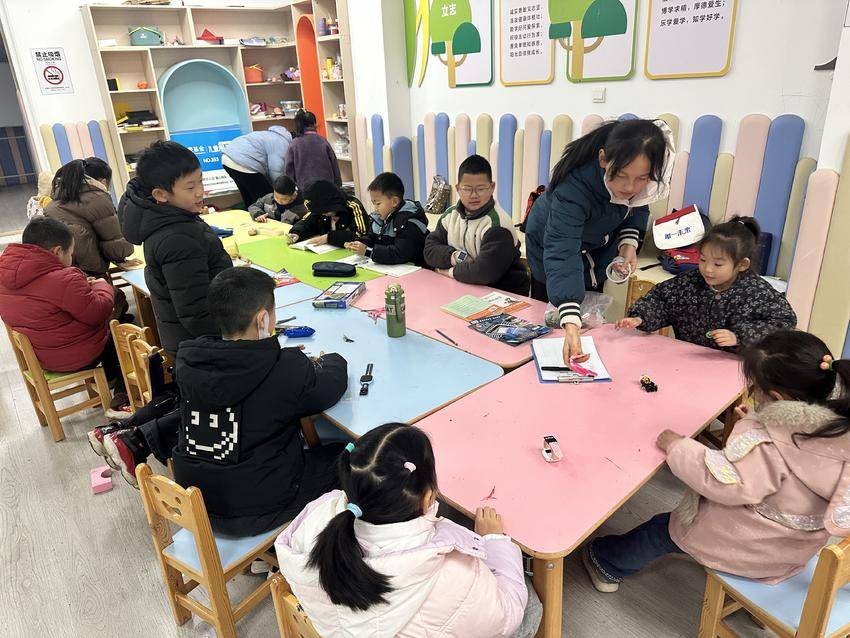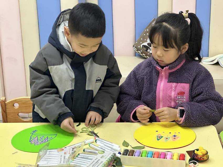 志愿者首先通过课件展示了森林里的动物、色彩,讲解了“森林舞会”的创意元素。随后分发彩纸、画笔等材料,让小朋友们自由创作。有的用彩纸拼贴出“森林小动物”造型,搭配手绘舞会场景;有的在圆盘上画出动物舞蹈的趣味画面,还写下暖心话语。志愿者协助构思、装饰,陪伴孩子们完成充满自然童趣的作品。