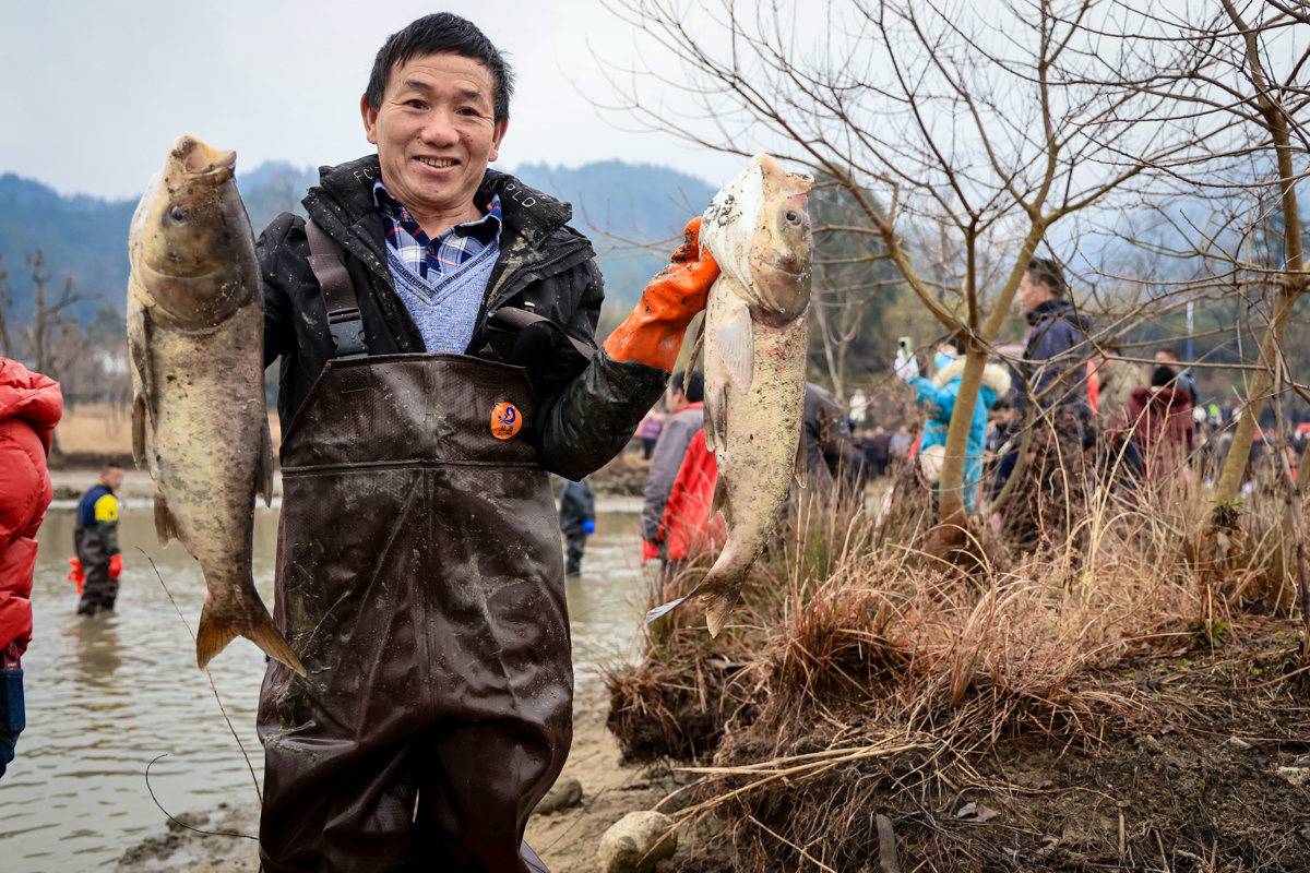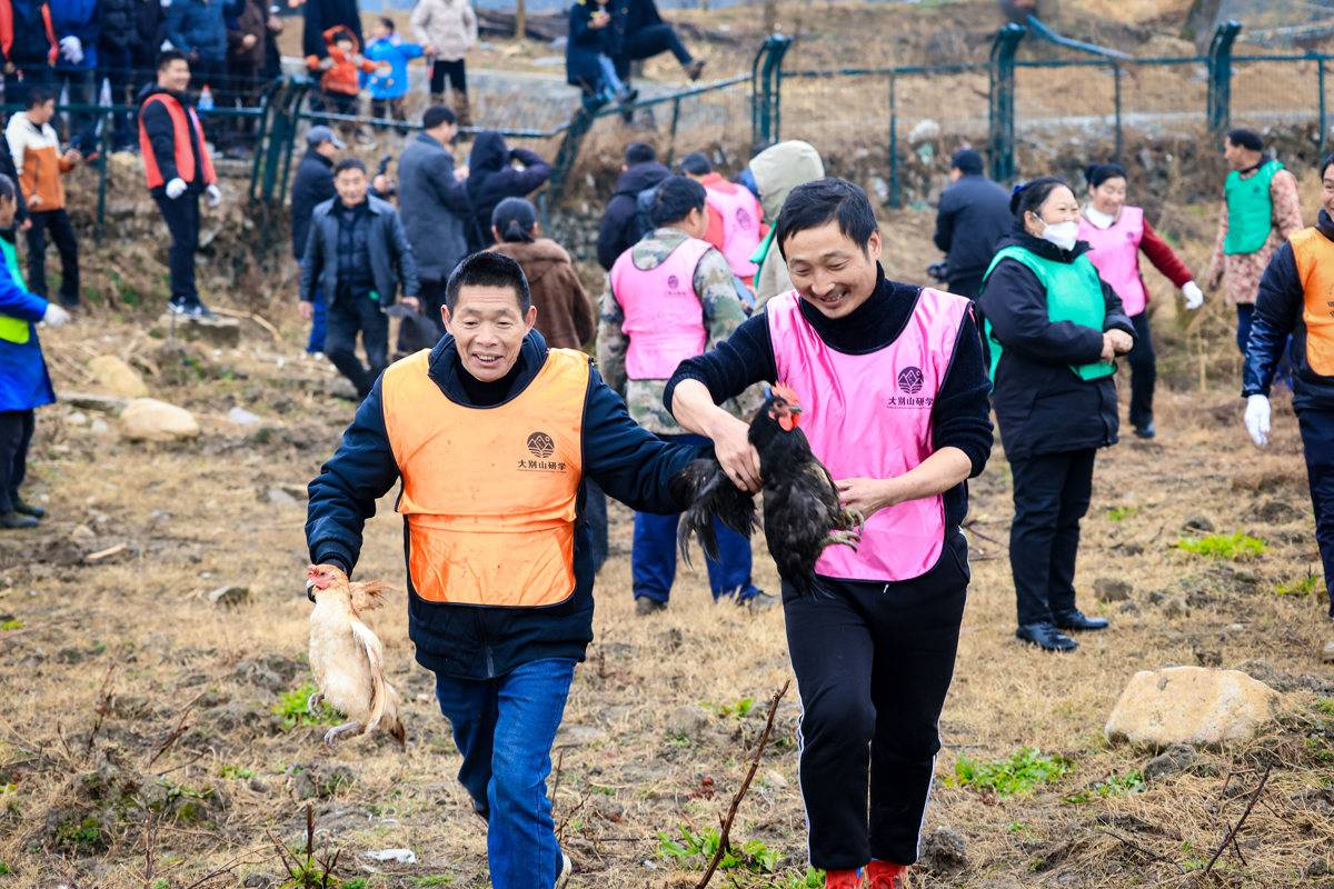 1月26日腊八节,罗田大别山旅游度假区在水上红叶景区举办首届腊八迎春民俗活动。抓鸡、捉猪、摸鱼三项趣味体验,吸引线下3000人参与、线上超3万人围观,点燃了当地新春年俗旅游季的热潮。(湖北日报全媒记者 成熔兴 摄)