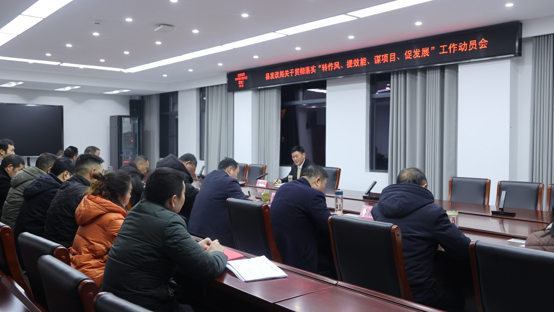 县发改局主要负责人、班子成员、副科级干部及各股室负责人在会上依次表态,表示将严格落实会议精神,紧扣“三争”工作目标,持续转变工作作风,切实提升服务意识和履职效能,全力推动政府职能从“管理者”向“服务者”转变,以优质高效服务推动项目提速增效,以过硬作风保障县域经济高质量发展。