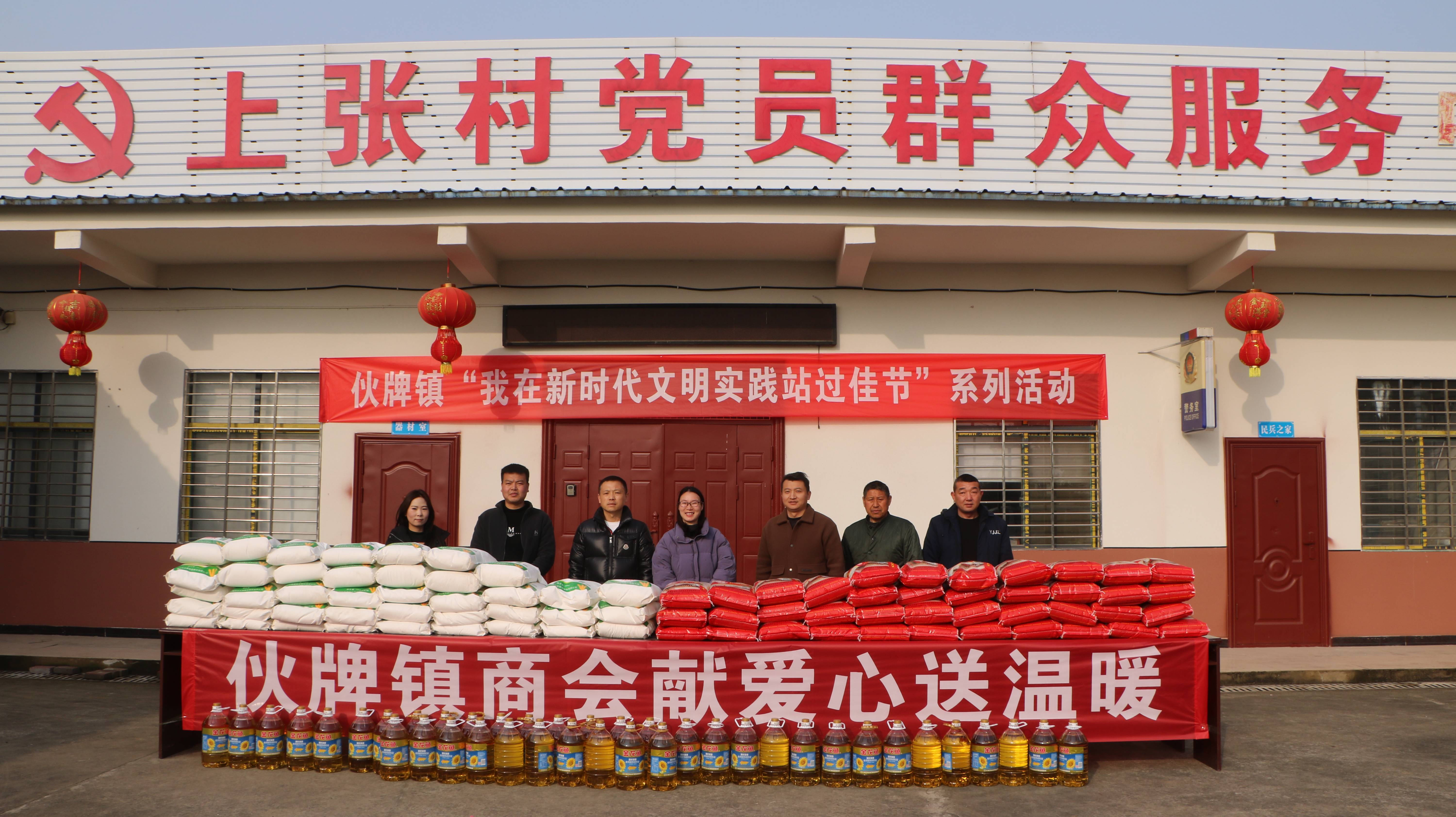 活动中,伙牌镇商会还向上张村捐赠了40份大米、40份面粉、40份食用油,把实实在在的关怀送到群众心坎上,以实际行动反哺家乡、温暖乡亲。