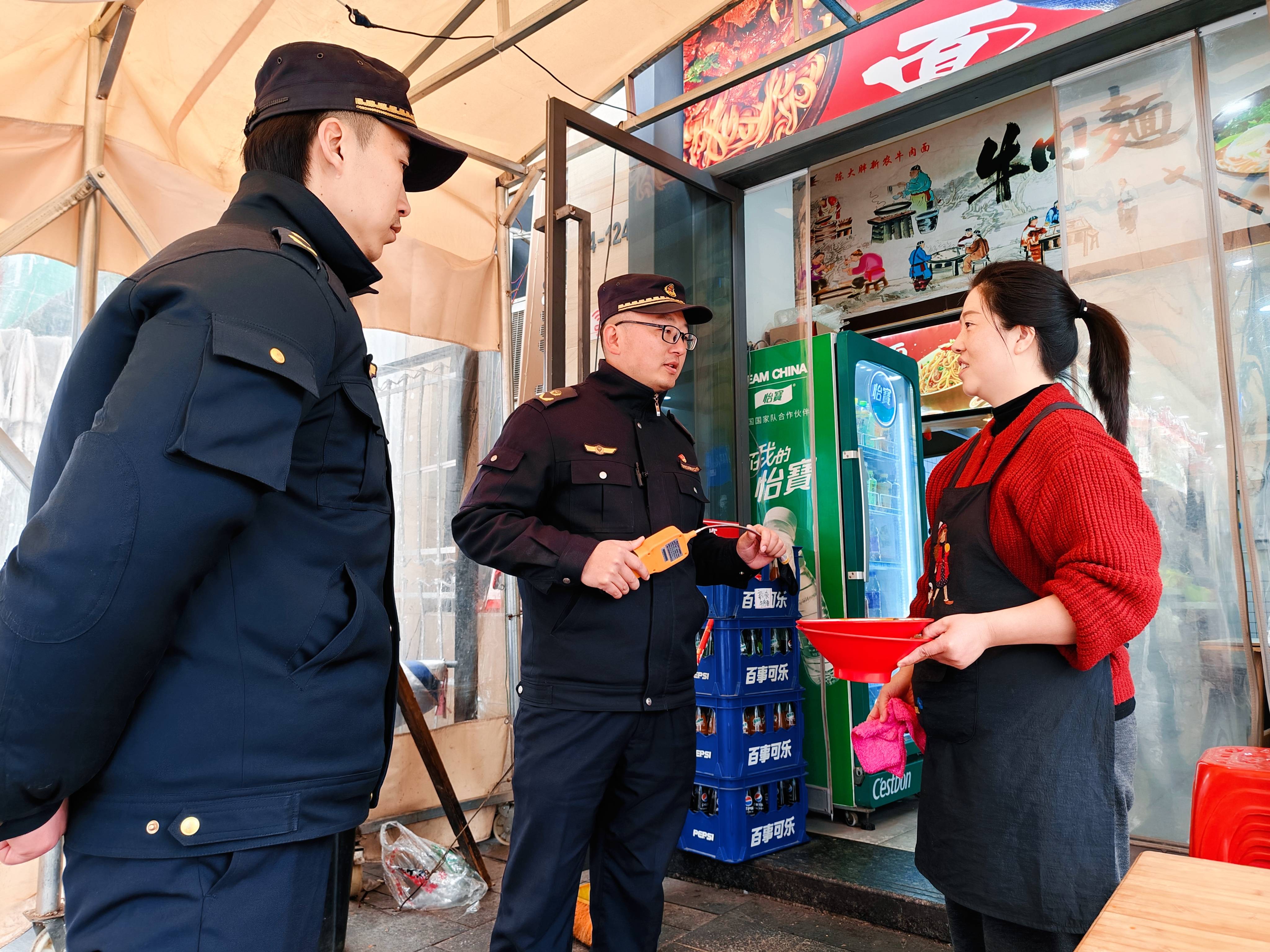 临近春节,辖区餐饮门店生意日渐红火,燃气使用频率大幅增加,安全防范尤为关键。中午时分,冯文褀将巡查重点转向燃气安全排查,深入沿街餐饮商户开展节前安全检查,把平安送到群众家门口。