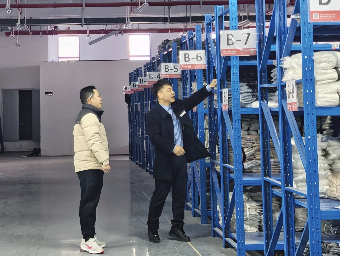 湖北银行天门支行客户经理在天门蕾曼服饰的生产车间了解订单生产详情