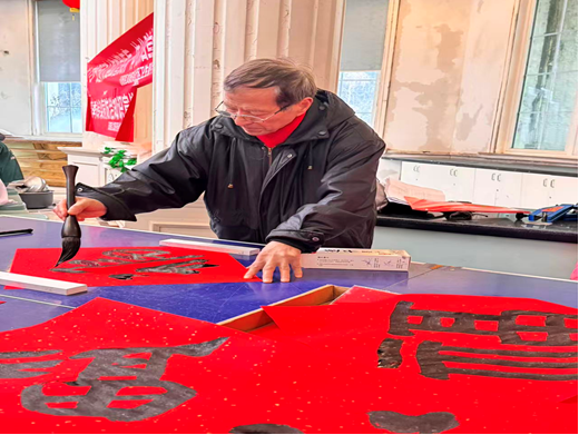 舞台之外,民俗体验与便民服务区域同样热闹不已。财神送福、变脸等民俗项目趣味十足,居民吉师傅挥毫泼墨,现场为大家写福字、撰对联,笔墨间满是新春的美好期许,摊位前人头攒动,大人孩子围拢观赏,沉浸式感受传统文化魅力。义诊、银行便民服务细致周到,年货摊位、文明宣传台有序排布,让活动既有“烟火气”又有“文明味”。“能看邻居演节目,还能享便民服务,这样的活动太贴心了!”汪女士捧着热粥开心道。