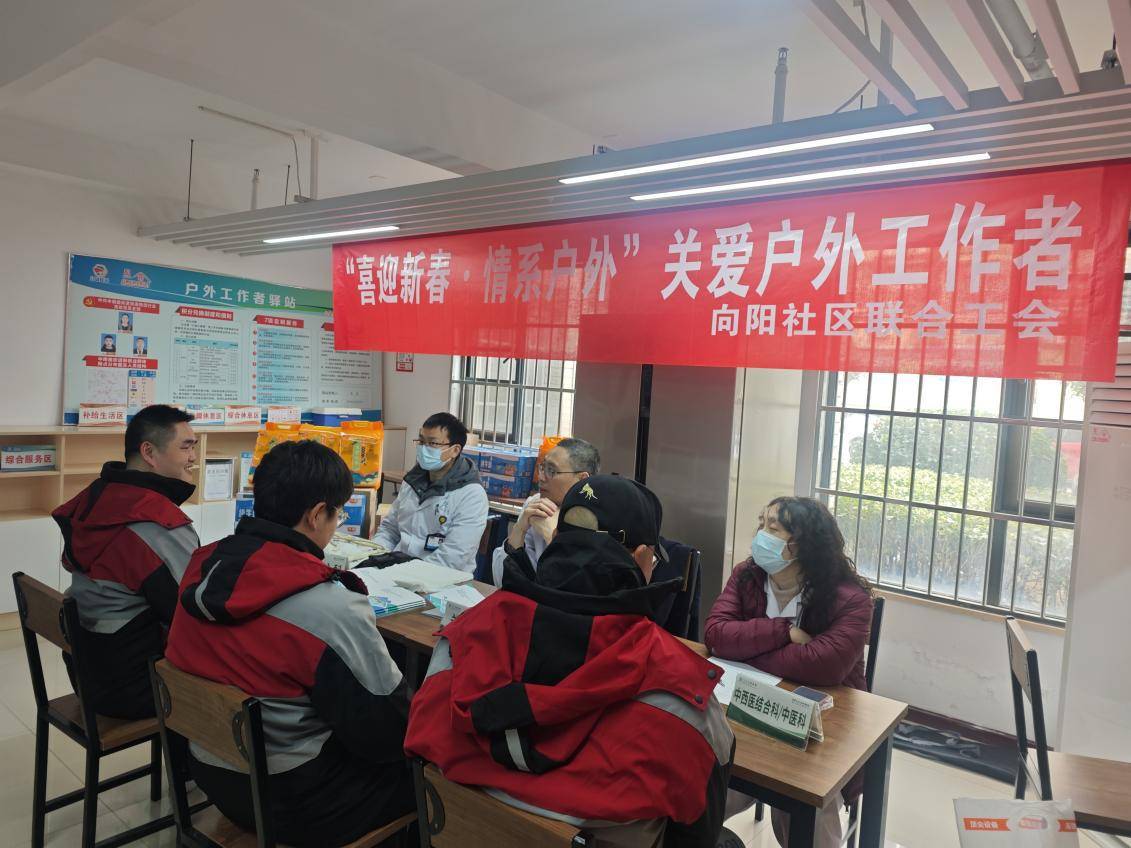 湖北日报讯(通讯员袁婧)为迎接马年新春佳节的到来,将贴心服务送到居民家门口,2月10日、11日连续两天,武汉市武昌区中南路街道向阳社区联合工会,携手东湖城建集团旗下东湖康养颐养中心,举办“喜迎新春·情系户外”关爱户外工作者主题活动暨新春惠民活动,聚焦新就业及老年、妇女群体需求,为大家送上一份份温暖的“新春礼包”。