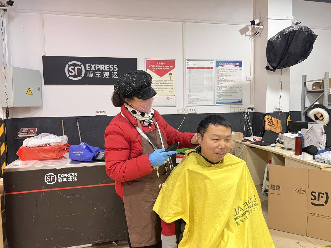 最受欢迎的当属理发摊位。经验丰富的志愿者理发师手中推剪清脆作响,动作娴熟利落,为前来理发的居民修剪出清爽干练的新发型。为了方便服务快递小哥,社区还将服务送到顺丰快递站点,“年前理个发,清清爽爽过年!”一位刚理完发的快递小哥笑着表示,平时工作繁忙,没时间特意去理发,这份服务来得太及时了。