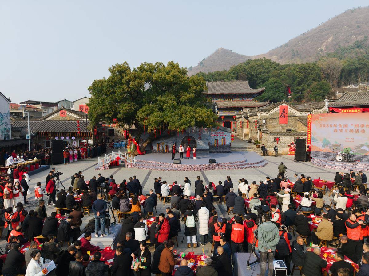 红灯笼挂满青瓦飞檐,竹簸箕里的玉米彩椒映着暖阳。2月11日,大冶市金湖街道上冯村被新春气息包裹得滚烫。作为2026年全国“四季村晚”春节主场,这座享有“九古奇村,诗画上冯”美誉的古村落,一场浸润乡土气息的新春盛宴,向全国观众展示着乡村的鲜活模样。